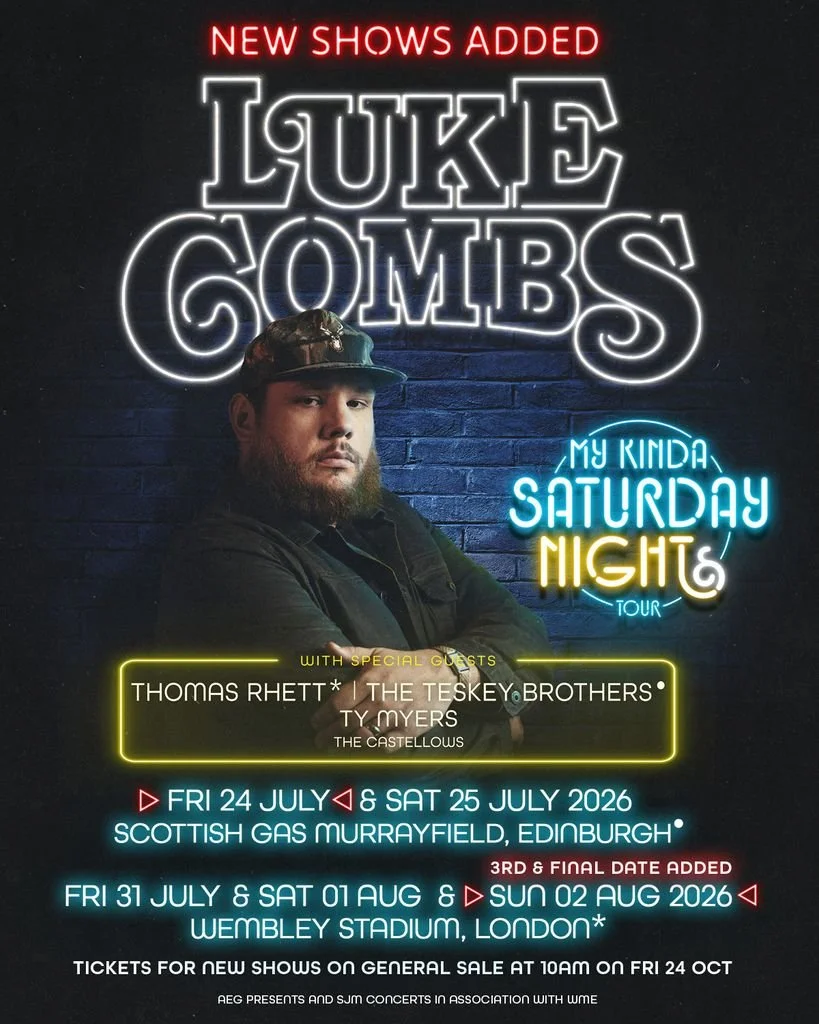 It’s a very exciting time to be a Luke Combs Bootlegger fan. Today it has been confirmed that a third night has been added at London’s Wembley Stadium on 2nd August 2026, joining the previously announced shows on 1st August 2026 and 31st July 2026. Edinburgh will get a second show at Scottish Gas Murrayfield Stadium on 24th July 2026, while Montreal’s Parc Jean-Drapeau adds a second night on 29th May 2026.